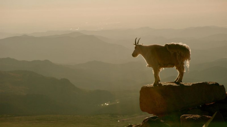 Schneeziegen sehen im Frühjahr ein wenig zerlumpt aus, wenn sie ihr dichtes, zotteliges Winterfell verlieren.