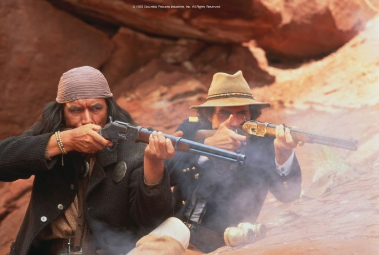 Wohl wissend, dass er keiner gerechten Sache dient, verfolgt General Crook (Gene Hackman, rechts) mit Hilfe des Fährtenlesers Al Sieber (Robert Duvall) den unbeugsamen Geronimo und seine letzten Krieger.