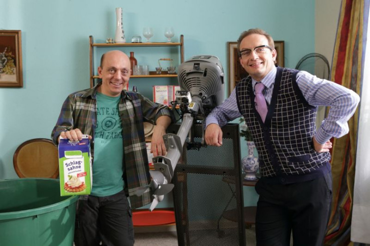 Heute wird die Schlagsahne mit dem Außenborder hergestellt: Bernhard Hoëcker (l.) und Wigald Boning (r.) freuen sich schon wie Bolle.