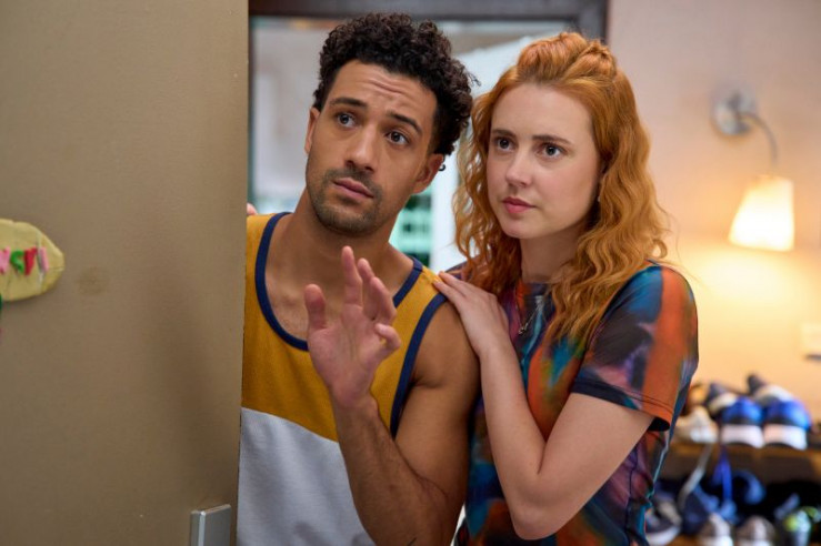 Tüffi (Daniel Zillmann, l.) fühlt sich von Jackies Schwester Engel (Nagmeh Alaei, r.) bedrängt.