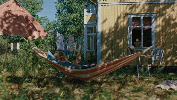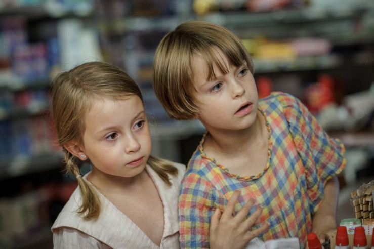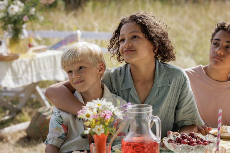 Die Brüder Pelle (Elton Larsson, l.), Elliot (Sami Fagerström Erfan, M.) und Ivan (Bertil Mancini Block, r.) hören der Geburtstagsrede ihres Vaters zu.