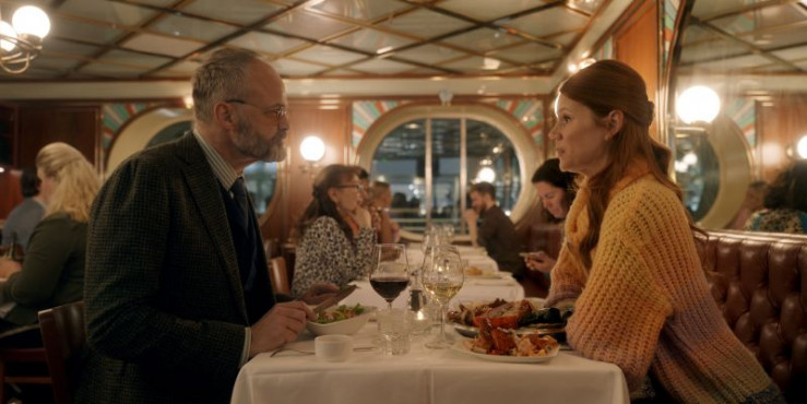 Die Fernsehproduzentin Klara Sandberg (Hanna Alström, r.) versucht den genialen, aber öffentlichkeitsscheuen Mordermittler Sven Hjerson (Johan Rheborg, l.) für die geplante True Crime-Show ihrer Firma Chef Media zu gewinnen.