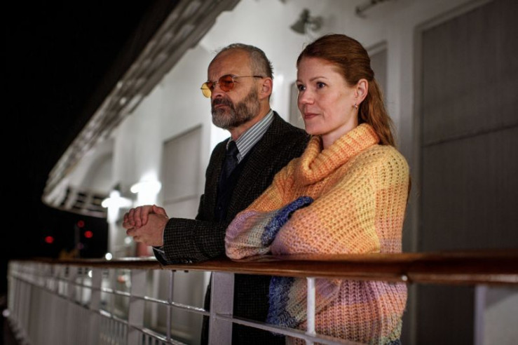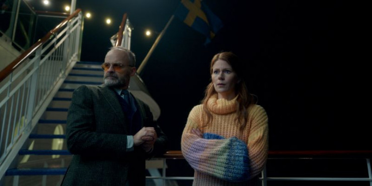 Mordermittler Sven Hjerson (Johan Rheborg, l.) und Fernsehproduzentin Klara Sandberg (Hanna Alström, r.) versuchen an Bord einer Ostseefähre einen Mord aufzuklären, bevor die Fähre ihr Ziel - Mariehamn auf Aland - erreicht.