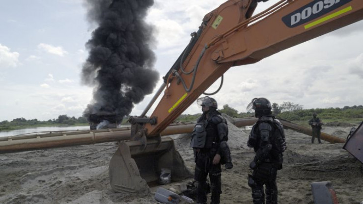 Polizeieinsatz gegen illegalen Goldabbau in Antioquia, Kolumbien