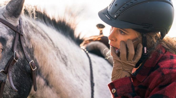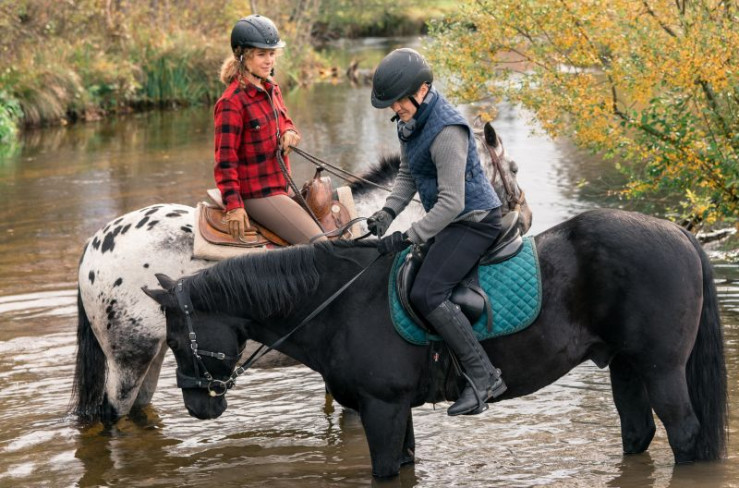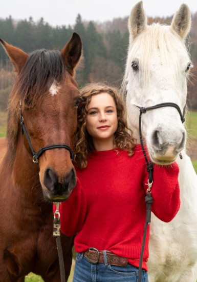 Rieke Wildenstein (Klara Deutschmann) mit den Pferden Jacomo und Luana.