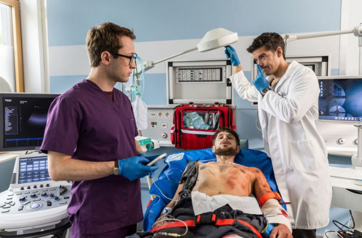 Im Bild v.l.n.r.: Dr. Harald Loosen (Rober Giggenbach), Julia Berger (Mirka Pigulla), Klinikleiter Wolfgang Berger (Horst Günter Marx), Prof. Dr. Karin Patzelt (Marijam Agischewa), Elias Bähr (Stefan Ruppe), Dr. Niklas Ahrend (Roy Peter Link), Dr. Matteo Moreau (Mike Adler), Dr. Leila Sherbaz (Sanam Afrashteh), Ben Ahlbeck (Philipp Danne), Elly Winters (Juliane Fisch), Dr. Theresa Koshka (Katharina Nesytowa)