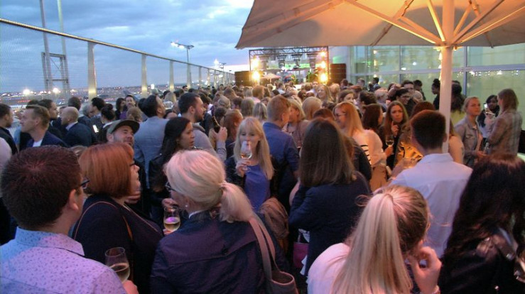 After-Work-Party auf der Besucherterrasse des Frankfurter Flughafens.