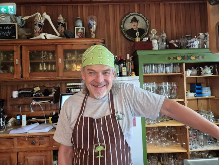 Wirt Schanuk vom Gasthof Lindl ("Zum Schanuk") mit seinem 3-Gänge-Menü.