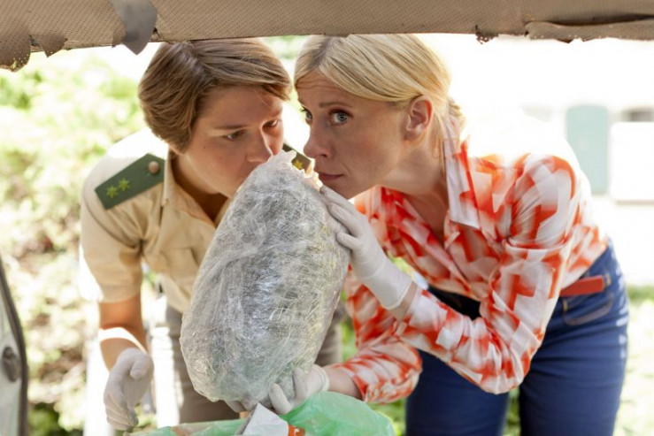 Sophie Haas (Caroline Peters, r.) und Bärbel Schmied (Meike Droste, l.) haben in Schönfelders Wagen Hasch gefunden.