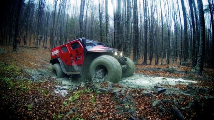 Der Ghe-O Rescue ist widerstandsfähig und geländegängig. Er kann Wasser durchqueren, steile Hänge hinauffahren, Felder durchqueren und über Schnee fahren.