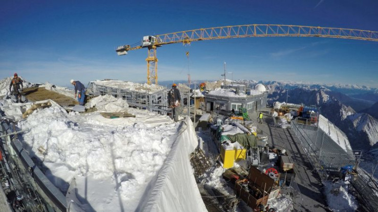 Auf der Baustelle in knapp 3.000 Metern Höhe müssen die Arbeiter mit extremen Klimabedingungen zurechtkommen.