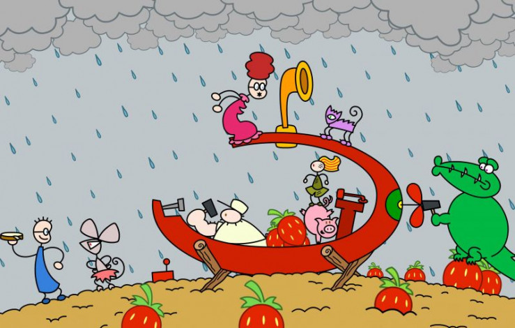 Starker Regen zieht auf. Deshalb bauen sich TOMs Freunde zur Sicherheit ein Unterseeboot.