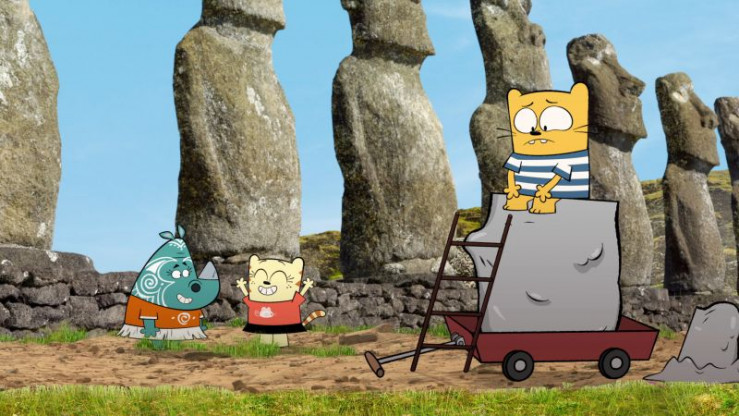 Ollie und Moon haben Unmengen an Ton gekauft, um Statuen von sich daraus zu formen. Während Moon bereits eine schöne Statue von Ollie modelliert hat, hat Ollie noch nicht einmal angefangen. Ihm ist es wichtig, dass in der Skulptur die Besonderheit des Gezeigten herauskommt. So wie bei den berühmten Statuen auf der Osterinsel. Kurzerhand reisen die beiden auf die besagte Insel, um sich inspirieren zu lassen.
