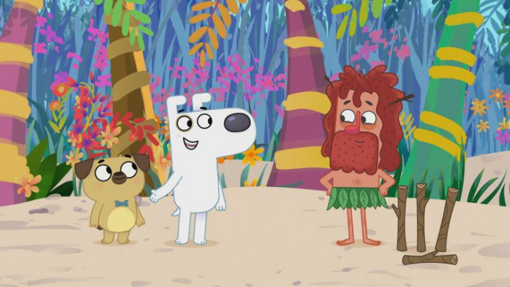 Der verschollene Finn unterhält Dog und Puck mit einem Lied auf seiner Gitarre.