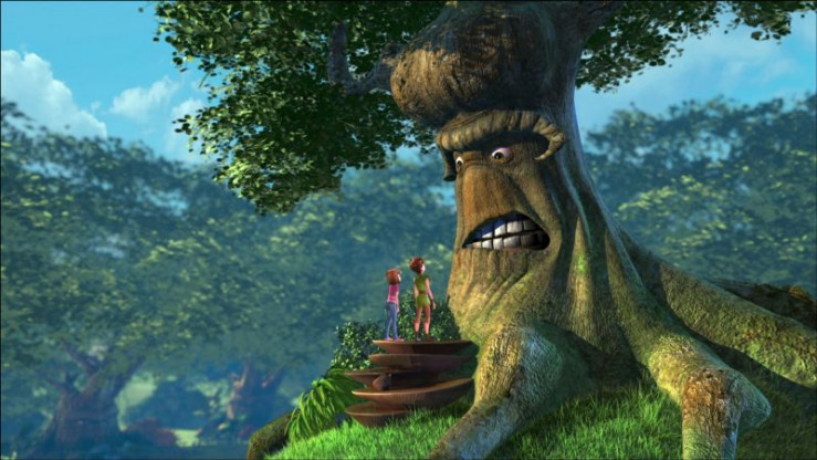 John und Michael werden wieder mal dazu verdonnert, ihr Zimmer aufzuräumen und Wendy soll ihnen helfen. Da kommt Peter Pan und nimmt die Drei mit nach Nimmerland, wo sie alle ihren Spaß haben können. Peter schlägt vor, einen Ausflug zu den sprechenden Bäumen zu machen. Wendy findet die Idee nicht so gut, weil im großen Buch von Nimmerland steht, dass die Bäume ihre Ruhe haben wollen. John und Michael laufen in ihrer lärmenden Art einfach los und sie werden prompt von einem der Bäume in Ranken gewickelt und ruhiggestellt. Als Peter und Wendy dazu kommen, fordert Peter ihre Freilassung, aber die große Eiche, der Chef der Bäume, lässt sich von ihm nichts befehlen.