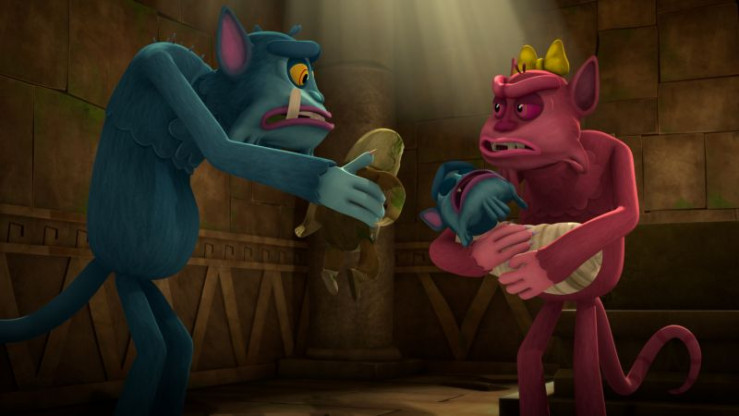 Das Dämonen-Baby interessiert sich nicht für den Schlaf-Affen.