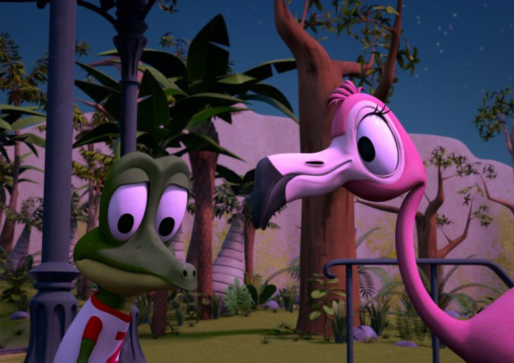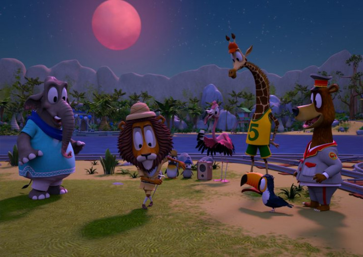 Als die Zoobande wegen einer Panne erst spät am Abend auf ihrer Insel ankommt, leuchtet der Mond pink. Das erinnert die Flamingo-Teenagerin Flora an einen Brauch: den Flamingo-Mond-Tanz.