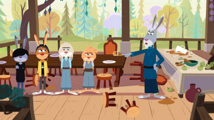 Meister Hubertus bestraft Kela, Max, Anton und Emmi für das Chaos, das sie angerichtet haben.