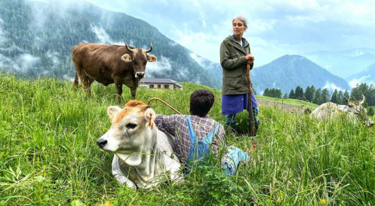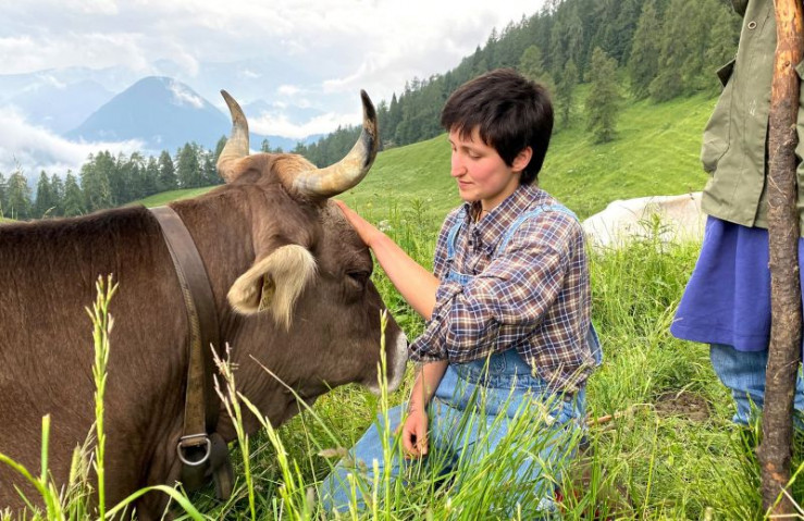 Die Milchkühe auf der Malga Telvagola bekommen eine extra Streicheleinheit.