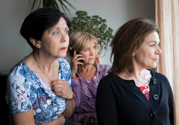 Agnes (Hannelore Elsner, re.) und ihre beiden Freundinnen Gerda Reet (Doris Plenert, links) und Selma Braun (Martina Breuer) beäugen misstrauisch den entlassenen Sträfling Komalschek.