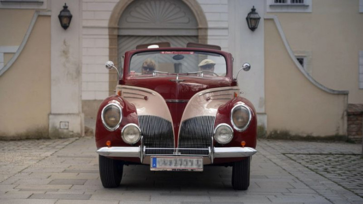 Franz Steinbacher und Ehefrau Riki in einem Lincoln Zephyr BJ 1939, der Oldtimer ist einzigartig in Europa.
