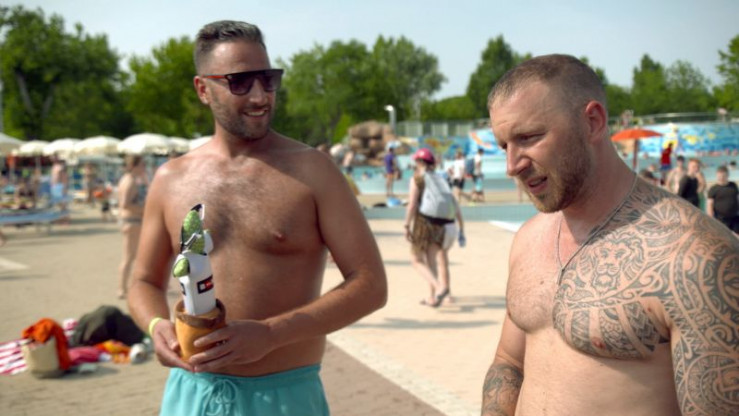 Sascha (li.) und Kumpel Dennis suchen Kandidatinnen für die Wahl zur Miss Marina