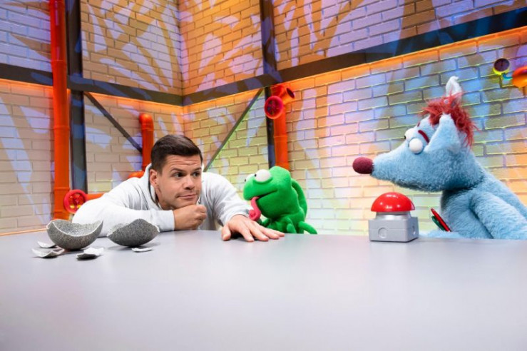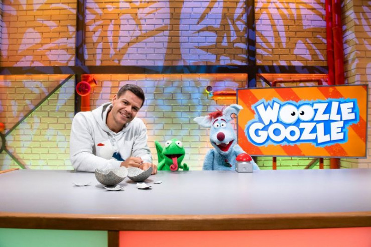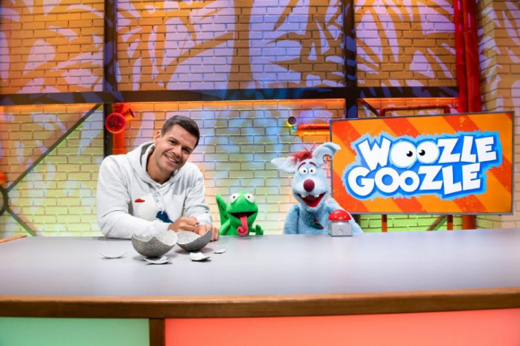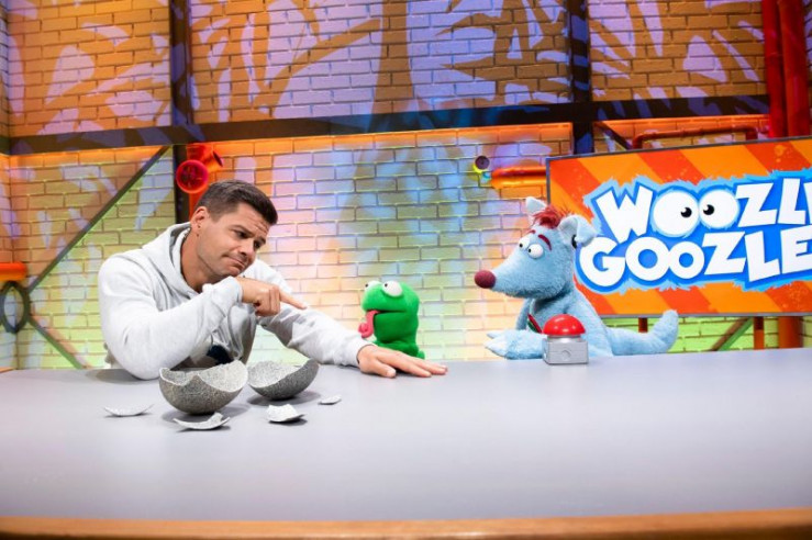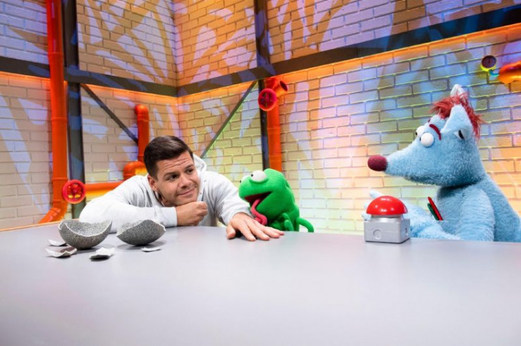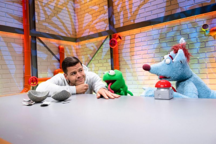 Woozle (re.) hat das Ei einer kuscheligen Woozlinger Flausch-Echse mit ins Studio gebracht, aber Simón (li.) ist skeptisch. Und tatsächlich: Woozle brütet stattdessen aus Versehen ein beängstigendes Chawoozleon (mi.) aus, das gleich darauf auch noch verschwindet! Ob die beiden es einfangen können, bevor es das ganze Studio verwüstet?