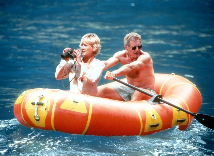 Quinn Harris (Harrison Ford, li.) und Robin Monroe (Anne Heche, re.) erleben nach einem Flugzeugabsturz im Südpazifik eine Reihe von Abenteuern und eine Romanze. +++ Die Verwendung des sendungsbezogenen Materials ist nur mit dem Hinweis und Verlinkung auf RTL+ gestattet. +++