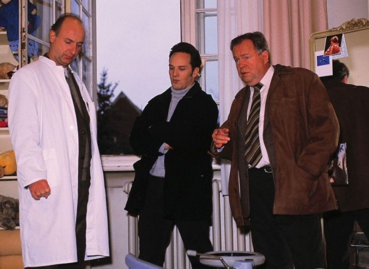 Die Kommissare Bongartz (Max Gertsch, l.) und Kehler (Wolfgang Bathke, M.) überlegen mit Prof. Fink (Michael Schönborn), ob die Patientin aus dem Fenster der Klinik gestoßen wurde - und wenn, von wem...