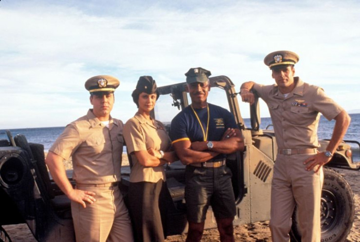 V.l.: Bud Roberts, Jr. (Patrick Labyorteaux), Harmon Rabb, Jr. (David James Elliott), Lt. Diane Schonke (Catherine Bell), A.J. Chegwidden (John M. Jackson)