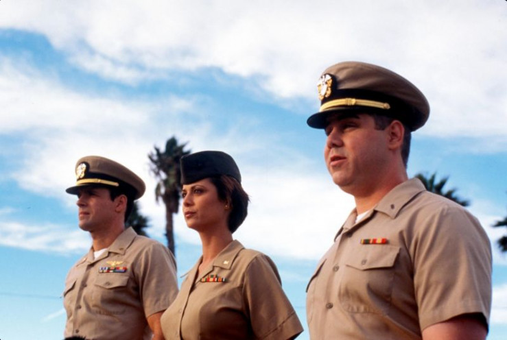 V.l.: Lt. Harriet Sims (Karri Turner), Bud Roberts, Jr. (Patrick Labyorteaux), Gunnery Sgt. Victor 'Gunny' Galindez (Randy Vasquez), Harmon Rabb, Jr. (David James Elliott), Jason Tiner (Chuck Carrington), A.J. Chegwidden (John M. Jackson), Sarah MacKenzie (Catherine Bell), Lt. Cmdr. Mic Brumby (Trevor Goddard)
