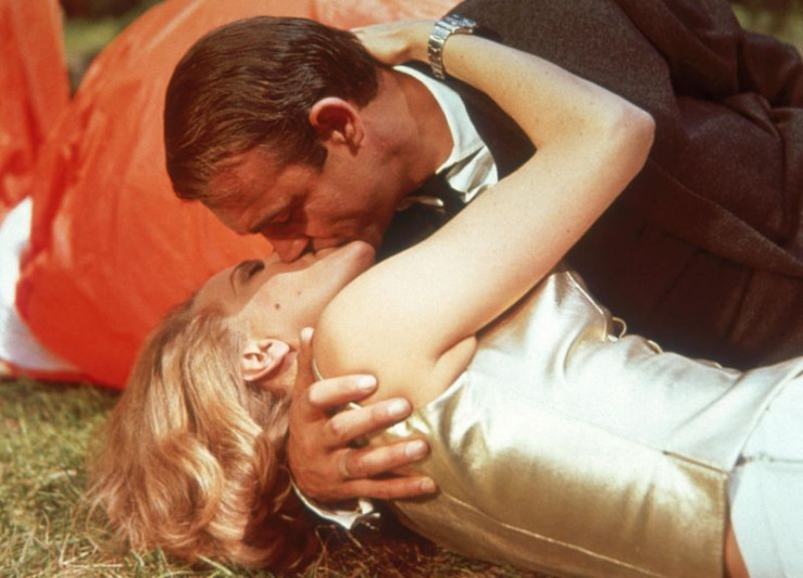 Trotz aller Strenge ist Pussy Galore (Honor Blackman) dem umwerfenden Charme des Geheimagenten James Bond (Sir Sean Connery) nicht gewachsen.