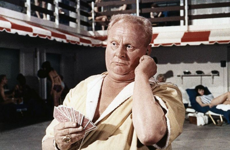 Auric Goldfinger (Gert Fröbe, l.), James Bond (Sean Connery)