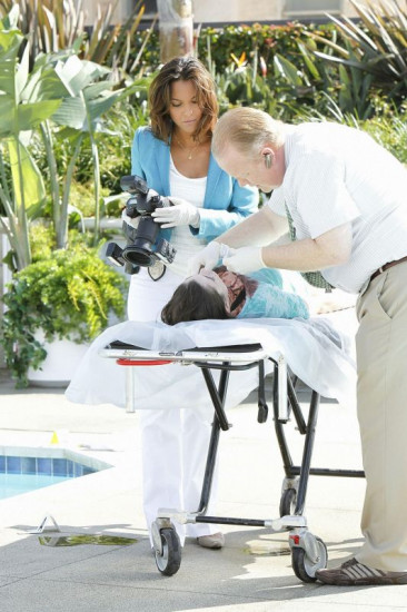 Horatio (David Caruso) vernimmt Monica Dow (Kristina Apgar), die ihre ermordete Freundin Corinne am Pool der Dade University gefunden hat. +++ Die Verwendung des sendungsbezogenen Materials ist nur mit dem Hinweis und Verlinkung auf RTL+ gestattet. +++