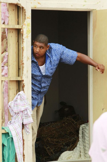 Walter (Omar Miller, li.hi.) und Eric (Adam Rodriguez, li.) eilen herbei, als Horatio (David Caruso) den regungslosen Ryan (Jonathan Togo, liegend) findet, der von dem Tornado überrascht wurde... +++ Die Verwendung des sendungsbezogenen Materials ist nur mit dem Hinweis und Verlinkung auf RTL+ gestattet. +++