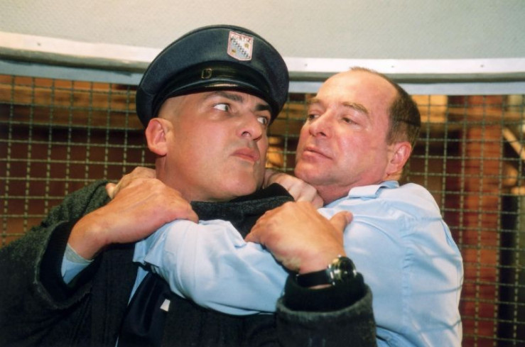 Brock (Leon Boden, re.) hat seinen Kollegen Kittler (Egon Hofmann) provoziert. Kittler reicht es und er schlägt zu... +++ Die Verwendung des sendungsbezogenen Materials ist nur mit dem Hinweis und Verlinkung auf RTL+ gestattet. +++