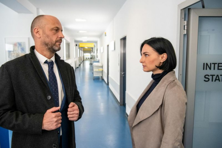 Klinikchef Carsten Bachmann (Christian Körner) muss Nora (Mimi Fiedler) die Konsequenzen ihres Verhaltens mitteilen.