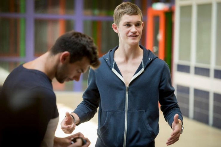 Leo (Tim Oliver Schultz, l.) fragt Hugo (Nick Julius Schuck) nach seinem Tagebuch. Jedoch verbietet Hugo Leo, es zu lesen.