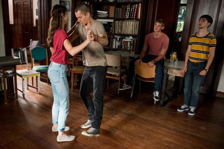 V.l.: Emma (Luise Befort) bringt Leo (Tim Oliver Schultz) das Tanzen bei. Jonas (Damian Hardung) und Toni (Ivo Kortlang) schauen den beiden ganz begeistert zu.