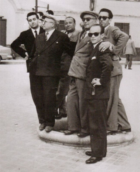 Peppino kämpft gegen die Mafia - obwohl seine eigene Familie in deren Umfeld involviert ist. Das Bild zeigt seinen Vater Luigi (3.v.l.) mit mehreren Mafiagrößen Siziliens:(v.l.): Leonardo Pandolfo, Cesare Manzella, Tommasco Impastato, Sarino Badalamenti und schließlich auch Peppinos Mörder Gaetano Badalamenti. +++ Die Verwendung des sendungsbezogenen Materials ist nur mit dem Hinweis und Verlinkung auf RTL+ gestattet. +++