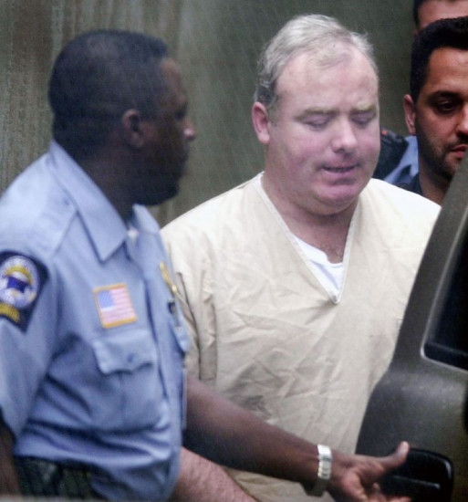 Als Michael Skakel (r.) am 29. August 2002 das Gericht in Norfolk verlässt, wird er in eine 20jährige Haftstrafe überführt. Das Gericht ist sich sicher, dass er 1975 die 15jährige Martha Moxley getötet hat. Er selbst beteuert bis heute seine Unschuld.