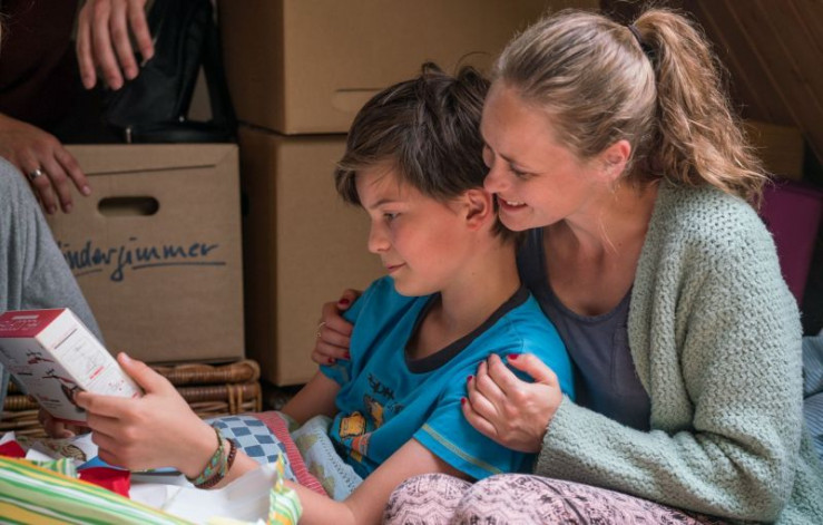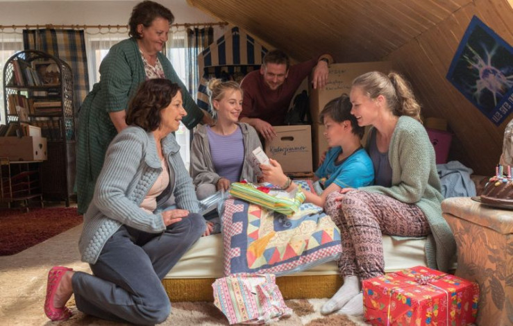 Die Bonusfamilie (v.l.n.r.) Anna Schäfer (Rolle: Katja), Levis Kachel (Rolle: William), Fillin Mayer (Rolle: Eddie), Inez Björg David (Rolle: Lisa), Steve Windolf (Rolle: Martin), Lucas Prisor (Rolle: Patrick) und Louise Sophie Arnold (Rolle: Bianca).