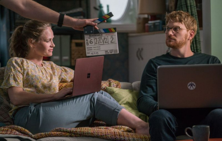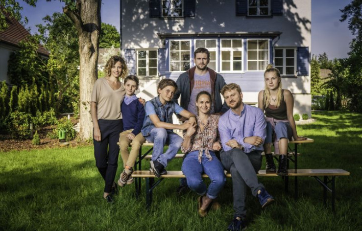 Die Bonusfamilie (v.l.n.r.) Anna Schäfer (Rolle: Katja), Levis Kachel (Rolle: William), Fillin Mayer (Rolle: Eddie), Inez Björg David (Rolle: Lisa), Steve Windolf (Rolle: Martin), Lucas Prisor (Rolle: Patrick) und Louise Sophie Arnold (Rolle: Bianca).