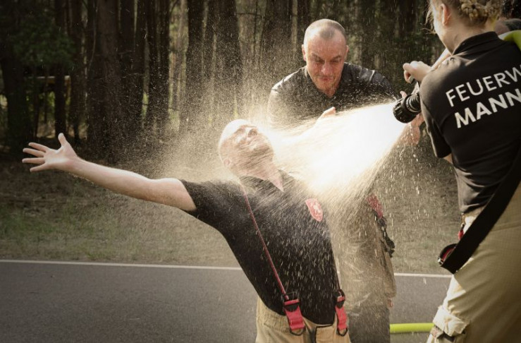 Feuerwehrfrau Billy Johannes (Anna Schimrigk) hält die Trauerrede für ihren verstorbenen Kollegen Pio.