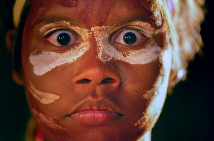 Junge mit Kalkbemalung für Junba, eine traditionelle Zeremonie der Aborigines mit Tanz, Musik und Gesang in der Kimberley-Region.