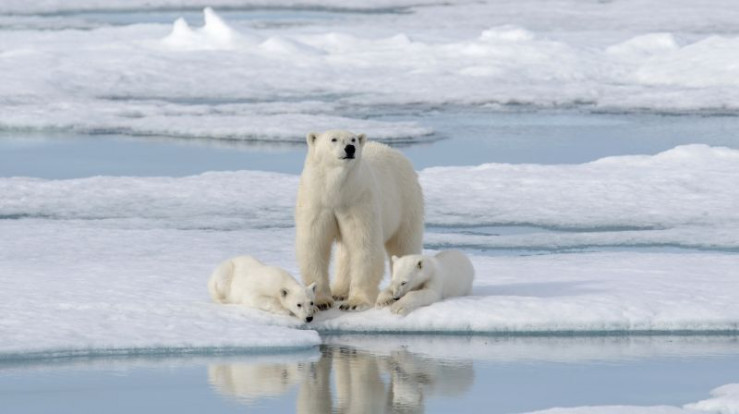 Wilde Eisbärin mit Jungtieren auf dem Packeis.