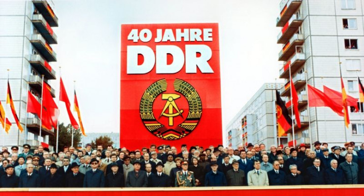 Tribüne für die Parade zum 40. Jahrestag der DDR am 07. Oktober 1989.