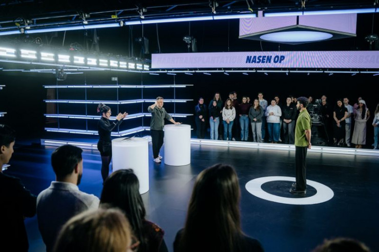 In der Gameshow "Neo Match up" tritt Parshad Esmaeili (l.) gegen Özcan Co?ar (M.) an und muss fünf Kandidaten und Kandidatinnen die richtige Beauty OP zuordnen.
