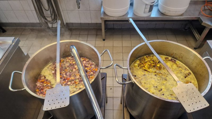 In Berlins Suppenküche des Franziskanerkloster stehen täglich die ganz großen Töpfe auf dem Herd.