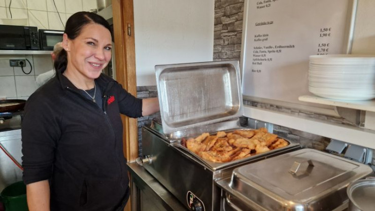 Nicole Dams betreibt den Imbiss "Die alte Tanke" in Brandenburg. Donnerstags, am Schnitzeltag gibt es Mittagessen für kleines Geld.